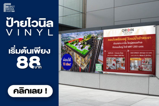 พิมพ์ป้ายไวนิล ราคาถูก 88 บาท สั่งป้ายไวนิลพิมพ์คมชัด สีสดไม่ซีด เลือกความหนาได้ต...