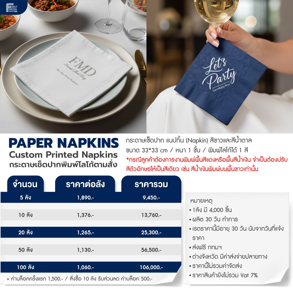 กระดาษเช็ดปากพิมพ์ลาย ราคา 1060 บาท
