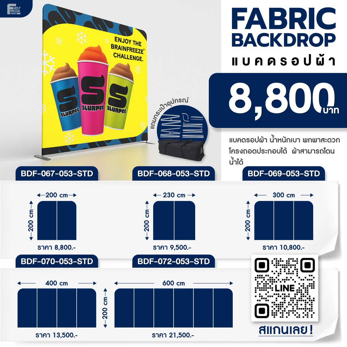 ป้าย Backdrop ผ้า ราคาถูก 3600 บาท งานด่วนแค่ไหนก็เอาอยู่! อัปเกรดบูธให้พรีเมี่...