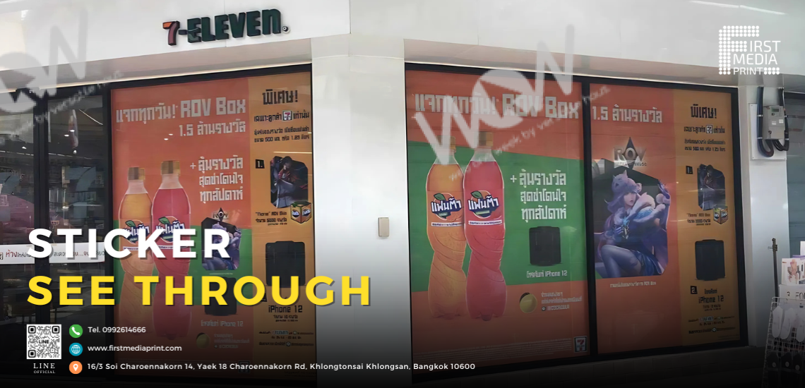 สติกเกอร์ซีทรูที่ติดอยู่ตามกระจกหน้าร้าน 7-Eleven เป็นสื่อโฆษณาที่มีประสิทธิภาพสูง ช่วยให้ร้านค้าโปรโมตสินค้าและโปรโมชั่นได้อย่างมีประสิทธิภาพ ในขณะเดียวกันก็ช่วยลดความร้อนและเพิ่มความเป็นส่วนตัวให้กับลูกค้า วัสดุชนิดนี้ยังช่วยสร้างความสวยงามให้กับร้านค้าโดยรวมอีกด้วย