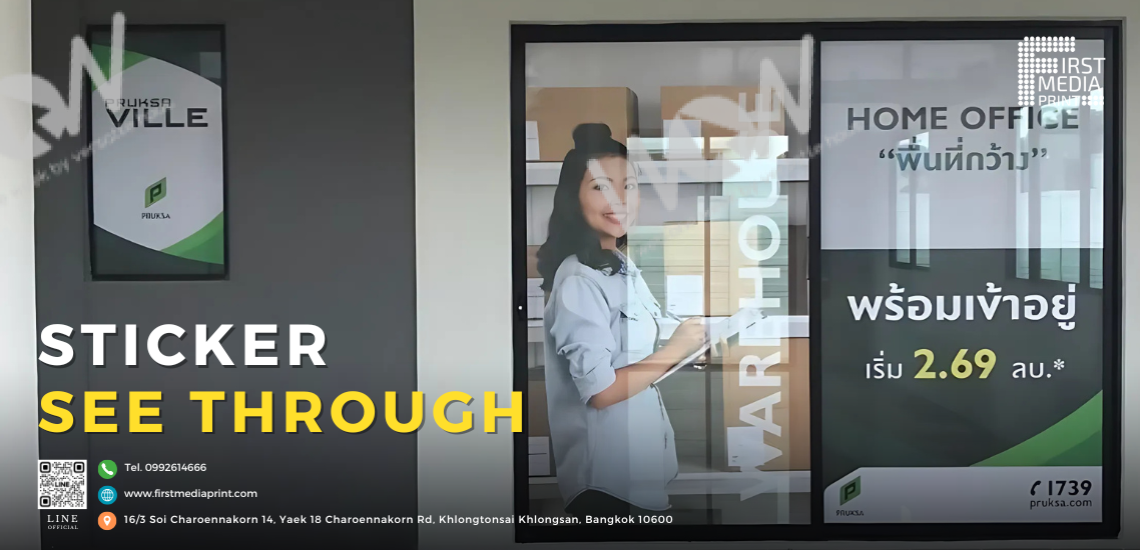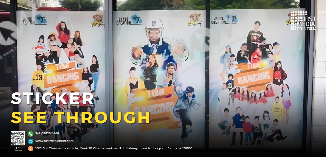 พิมพ์ลงบนวัสดุสติกเกอร์ซีทรู – ใช้เครื่องพิมพ์คุณภาพสูงที่สามารถพิมพ์สีคมชัดและทนทานต่อสภาพอากาศ
